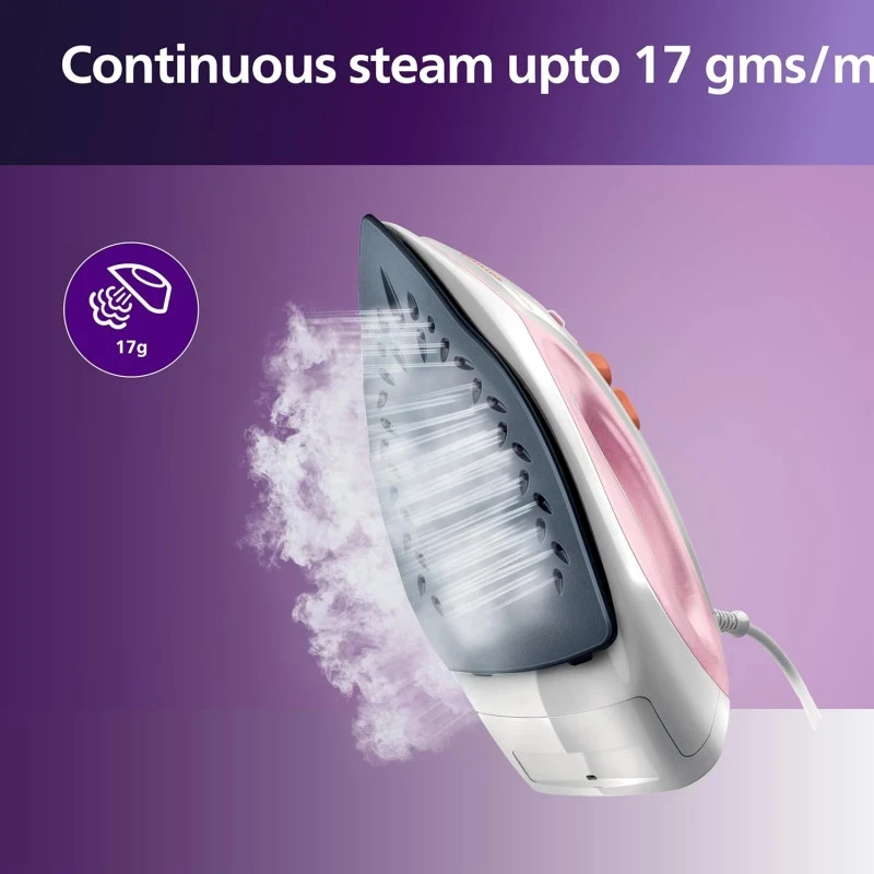 Philips is World’s Number 1 Ironing brand. NON-STICK SOLEPLATE: The iron is equipped with a golden non-stick soleplate for smooth gliding on all fabrics POWER: 1440 watts power ensures a constant high steam output for an excellent steam ironing performance STEAM RATE: Powerful continuous steam of up to 17 g/min for effective crease removal WATER TANK: 180 ml water tank for longer steam ironing sessions without having to refill PERFECT RESULTS IN FEWER STROKES: The powerful continuous steam and the even heat on soleplate ensures perfect ironing results in fewer strokes PREVENT WATER LEAKAGE: Keep the iron horizontal when not in use, do not fill water completely, leave some gap and wait for some time for the iron to heat up before using the iron