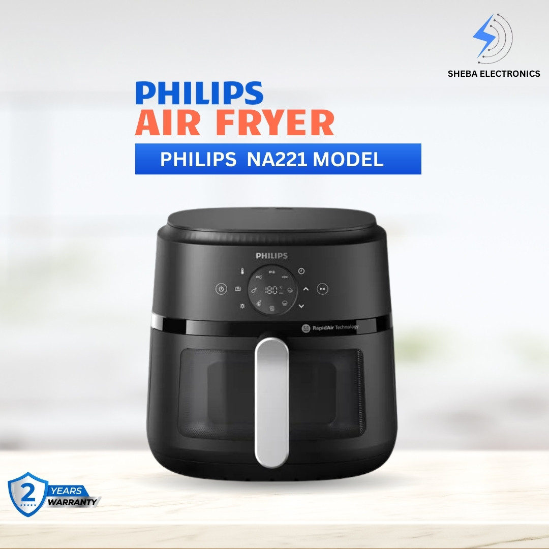 ✅ Make your cooking healthier, faster, and more convenient with the Philips NA221/00 Touch Panel Air Fryer—available now at Sheba Electronics.