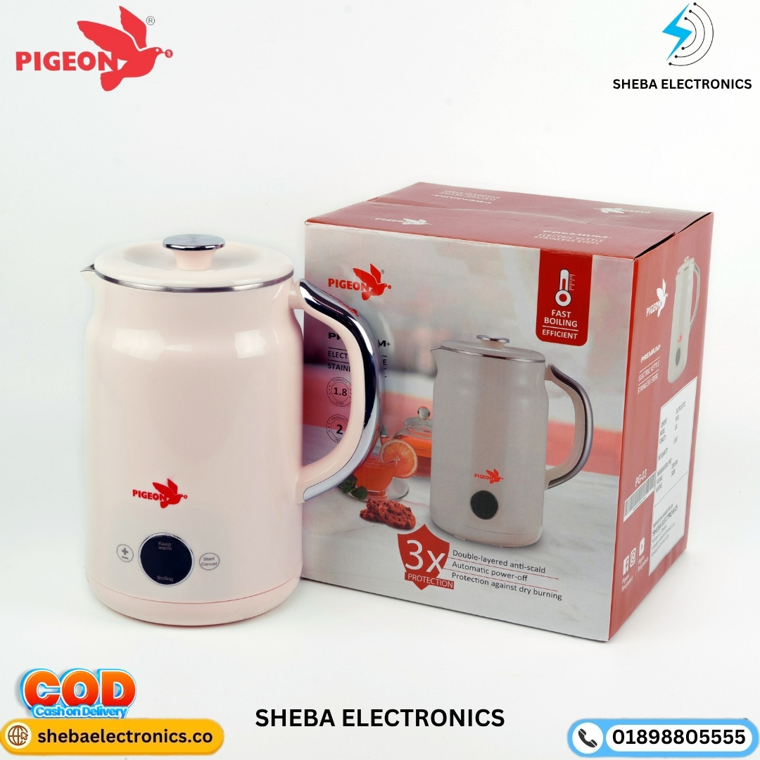 Enjoy quick and convenient hot beverages anytime with the Pigeon Premium Plus Electric Kettle (Model PG-03). Designed with efficiency, safety, and elegance in mind, this 1.8-liter stainless steel kettle makes boiling water faster and easier than ever.