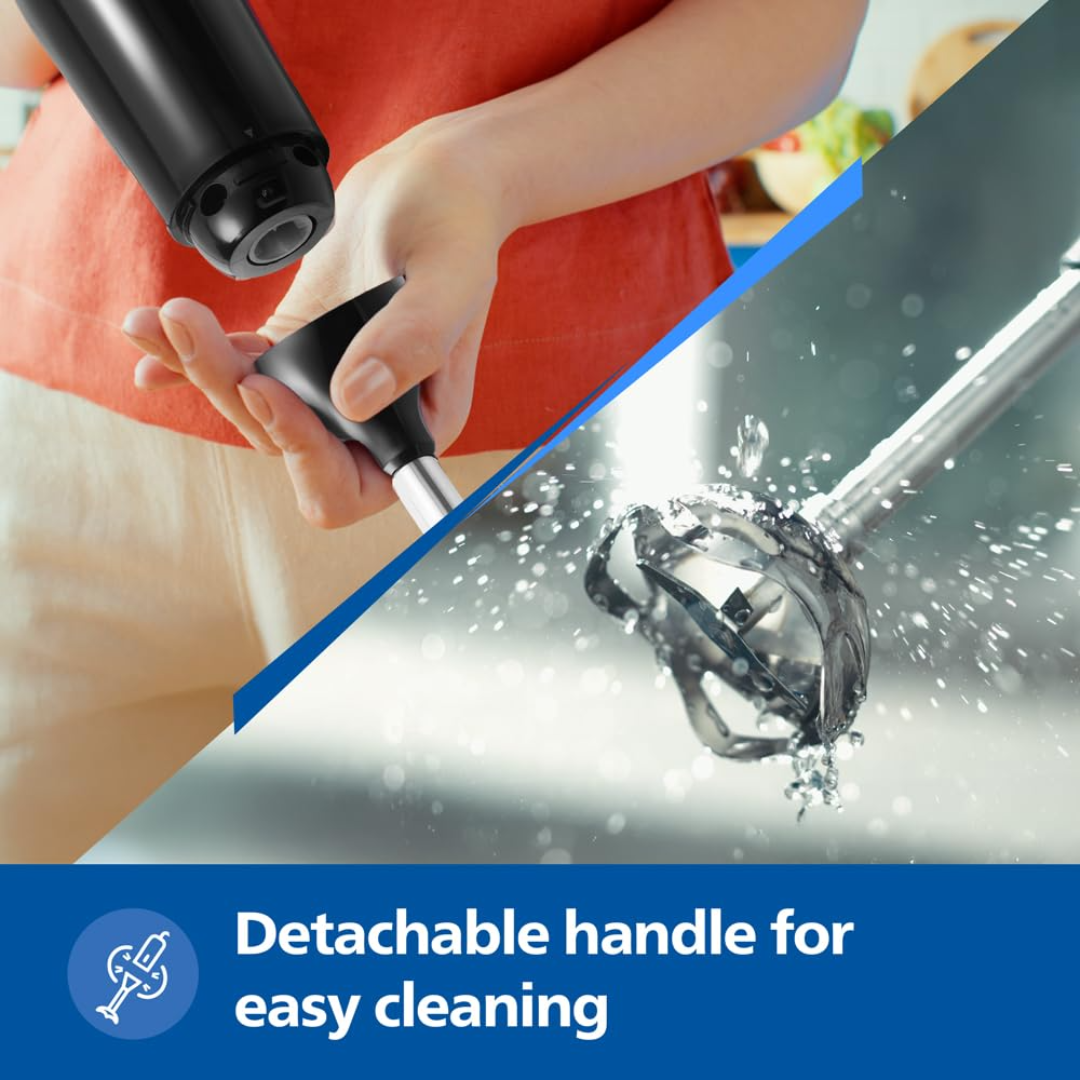 Its stainless steel blending arm ensures durability and hygiene, while the ergonomic grip provides comfort and control. Compact, easy to clean, and built for everyday use — it’s the perfect kitchen companion from Philips.
