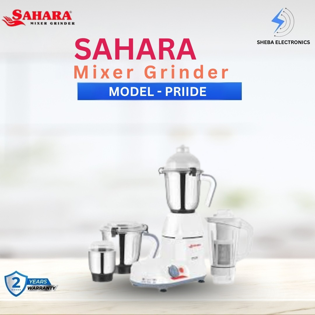 Upgrade your kitchen with the SAHARA Pride 4 in 1 Mixer Grinder & Blender, a powerful and versatile appliance designed to handle all your grinding and blending needs with ease. Equipped with a 750W heavy-duty dynamically balanced universal motor, this mixer ensures superior performance for everyday cooking.